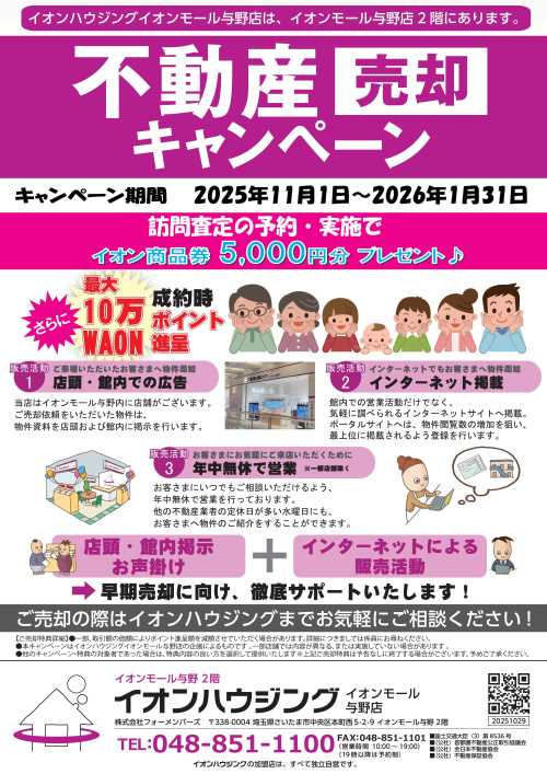 イオンモール与野店は、イオンモール与野の2階に店舗があるため、集客力を活かした独自の販売活動で早期売却に向け徹底サポートします。